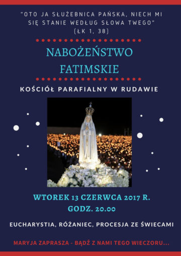 Wtorek 13 Czerwca 2017 r. Godzina 20.00 Kościół parafialny w Rudawie